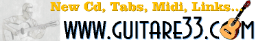 Guitar 33.com : de Michel Dalle Ave. Encore un site sympa ! Je ne vais bientôt plus avoir de place, mais je ne me plains pas, allez donc voir son site et vous comprendrez. En plus des adresses, on peut y trouver de nombreux fichiers Midi, des tablatures, etc ... Et je ne parle pas de la présentation ! On est artiste jusqu'au bout. Et bien entendu ...
