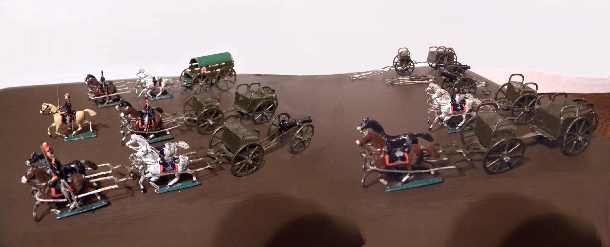 1 groupe de 2 chevaux Brun-noir 2 groupes de 2 chevaux Blanc-moucheté | 1 attelage de rechange, 1 roue | | |
